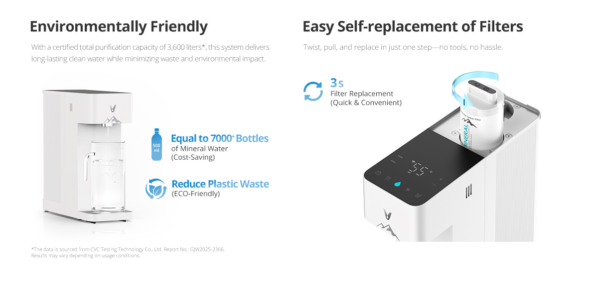 | Equal to 7000+ bottles of mineral water(Cost-Saving) |