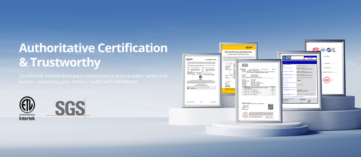 Certified by trusted third-party institutions to ensure water safety and quality—protecting your family’s health with confidence.