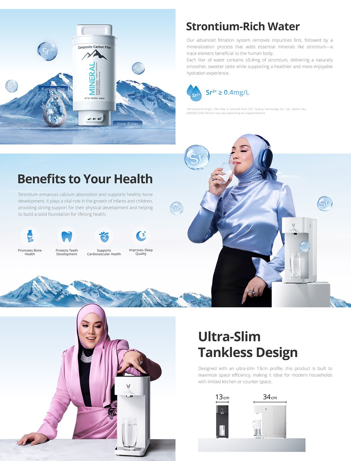 | *Strontium≥0.4mg/L:The data is sourced from CVC Testing Technology Co., Ltd. Report No.: GJW2025-2367.Results may vary depending on usage conditions. |